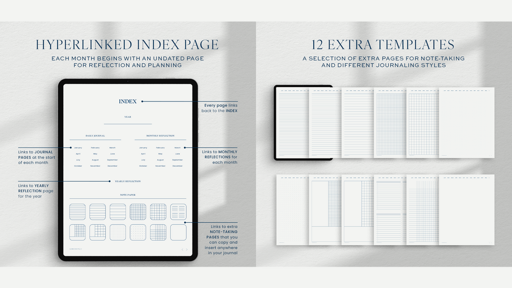 Designed for iPads or tablets that support PDF annotation apps (e.g., GoodNotes, Noteshelf, Notability, Xodo), it works seamlessly with an Apple Pencil or any stylus for a smooth writing experience. With 12 extra note-taking template pages, there’s plenty of room to document your journey in any creative way you like!